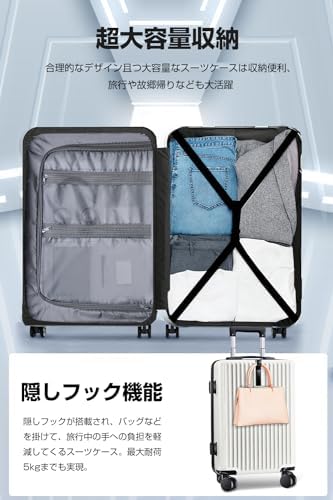 Large Capacity and Hidden Hook Function: This suitcase has very high storage capacity, so it can be used for a wide range of occasions, from beginners to those who are used to traveling. Made of lightweight and durable ABS resin. It also has a hidden hook, so it reduces the burden on your hands by hanging your bag