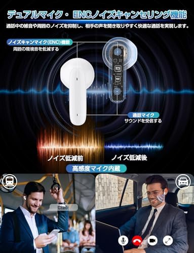 Clear calls & ENC noise cancellation: These earphones are designed specifically for calls, and feature ENC noise canceling capabilities in both ears. Built-in high sensitivity microphone, two on one side is designed to provide clear calls in any environment. Cancel background or environment noise through ENC noise cancellation. Eliminates over 90% of ambient sounds such as city’s hustle and traffic noise, wind noise, etc. Reduces ambient noise, while calculated the position of the user’s voice and tells the caller to the caller. Provides a comfortable call that is easy to hear the voice of the recipient. You can receive and end calls without removing your smartphone. Great for ZOOM/business/online meetings