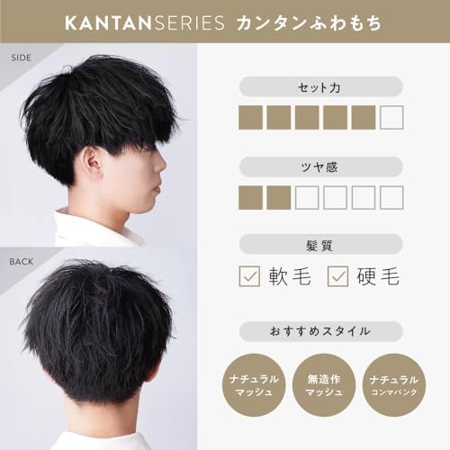 Kantan Fuchi Mochi 1: Matte clay texture. The design allows you to gradually finish the mat from becoming familiar with your hair, so you can enjoy the change. It has a set capacity and is recommended for those with soft hair