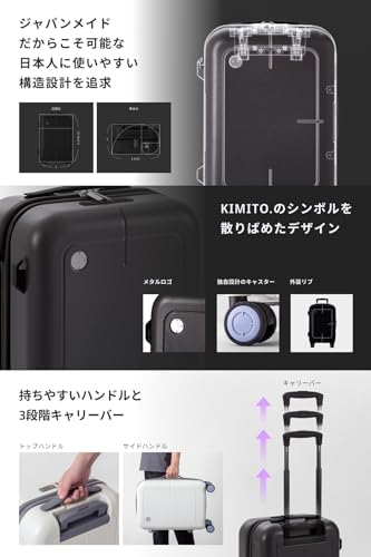KIMITO. Suitcase, Large Capacity 9.3 gal (35 L), Patent, Carry-on Carrying Case, Carry Bag, Japanese Company, Multi-functional, Latest TSA Lock, Simple, Silent Caster, Double Caster, Lightweight,