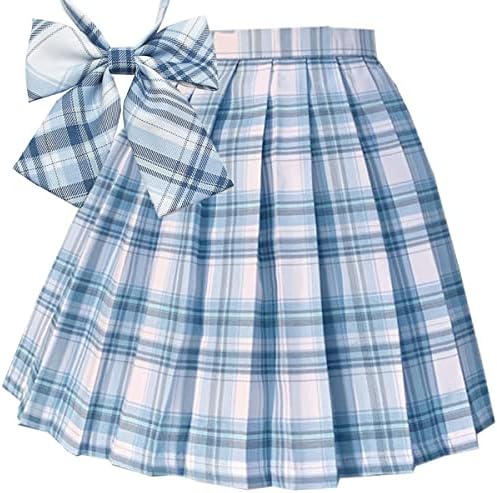 SYRHSYB 4-Piece Costume Set, High School Girl Uniform, 18.9-inch (48 cm) Length Skirt, Shirt, Necktie, Ribbon, Cosplay, Halloween, Parties, Amusement Parks, Cultural Festivals