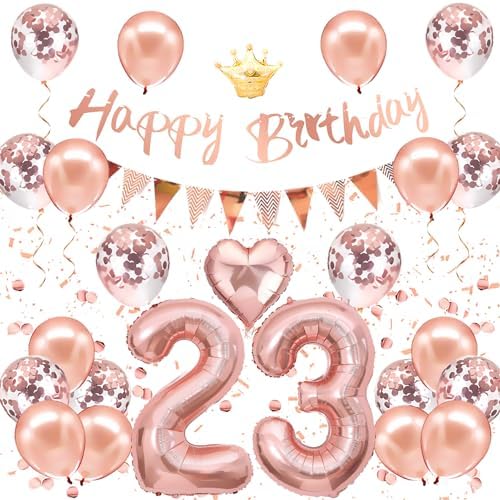 Ptyceler 23th Birthday Decoration Balloon Set Birthday Balloon Happy Birthday Garland Large Number Confetti Balloon Crown Balloon Birthday Party Decoration Adult Girl Rose Gold