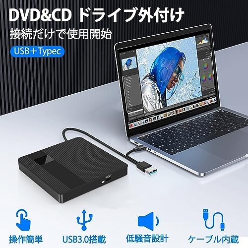 【Silent Design & Easy to Carry】 Designed with minimal operation noise, this dvd player can be used comfortably in quiet environments without worrying about the surroundings such as late night work or library. This DVD drive provides a comfortable working environment without annoying noise. In addition, its simple and intuitive operation and design is designed to be used for a wide range of ages. The external dry is compact so you can easily carry it anywhere. The dvd player is very thin and can be stored neatly in a bag or drawer when not in use